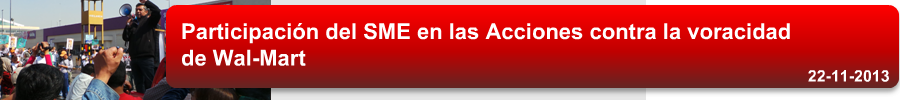 Viernes 22 de Noviembre, 2013 México, D.F. Wal-Mart Stores es considerada actualmente la empresa minorista más grande del mundo, no solo por las ventas que representa sino también por el enorme número de empleados, tiene su sede en Estados Unidos y fue fundada en 1962 por Sam Walton. En los últimos años Wal-Mart ha abierto innumerables sucursales en México en condiciones poco claras. Pero además es sabido que sus trabajadores carecen de los derechos laborales básicos. En Estados Unidos esta empresa transnacional ha sido demandada por abusar laboralmente de sus empleados y es que en la mayoría de los casos, los trabajadores nisiquiera tienen derecho a la hora de comida o a recibir pago por horas extras. En algunos estados del país vecino la empresa Wal-Mart fue obligada a realizar pagos retroactivos a los trabajadores demandantes e incluso en 2005, en el Estado de Calofornia tuvo que pagar 172 millones de dólares a miles de trabajadores quienes reclamaban que se les negaba ilegalmente la hora de almuerzo. La situación de descontento laboral se ha contagiado en México y ha llegado a tal punto que en el 2012 esta empresa enfrentó 603 juicios por demandas de sus trabajadores por causas como discriminación, despidos injustificados, malos tratos, hostigamientos, cancelación de días de descanso entre otros. De hecho es el Distrito Federal, la entidad de la Nación Mexicana donde Wal-Mart ocupa el primer lugar de demandas laborales. El escandaloso desempeño de esta empresa en nuestro país además se ha visto envuelto en denuncias por sorbornos, pagos de millones de dólares a las autoridades mexicanas para acelerar los permisos de construcción de las tiendas y otros favores. Sin embargo las propias autoridades poco han hecho para corregir la corrupta empresa norteamericana. Con base en todo lo anterior y muchas quejas más, el día de hoy, Viernes 22 de Noviembre de 2013 en varios países, sobre todo latinoamericanos se llevó a cabo una jornada de lucha contra Wal-Mart. En el Distrito Federal, México, la movilización, convocada por la Junta Promotora para la Construcción de una Nueva Central de Trabajadores, inició a las 10:00 a.m. en las inmediaciones de la sucursal Wal Mart de Buena Vista. Cientos de elementos policiacos ya se encontraban dispuestos en las entradas de la tienda departamental para impedir el paso a los ciudadanos concientes que integraron el contingente que se manifestó contra las malas prácticas de WalMart, dada esta situación, el contigente se situó a las afueras de la tienda Suburbia, que se encuentra a un costado de la empresa norteamericana. El mitin central inició sin contratiempo alguno. Integrantes de la Junta Promotora para la Construcción de una Nueva Central de Trabajadores tomaron la palabra para denunciar las malas prácticas de esta empresa en nuestro país. Por su parte, el Secretario del Exterior del Sindicato Mexicano de Electricistas, Humberto Montes de Oca Luna indicó que en México hay más de 250 mil trabajadores contratados por Wal-Mart prácticamente todos ellos se encuentran en la indefención laboral. Dejó ver que se apoyará a todos ellos para que puedan integrarse en una organización sindical y así puedan defender sus derechos como trabajadores y como ciudadanos. Este acto civil y pacífico se realizó con total normalidad, eso sí, con la presencia de una exagerada cantidad de policías que en lugar de combatir el crimen organizado, se encuentran prestos a reprimir y callar las voces que se atreven a cuestionar las prácticas corruptas de empresas como Wal-Mart. Gabriela Barragán (Video) Héctor Pimentel (Redacción)