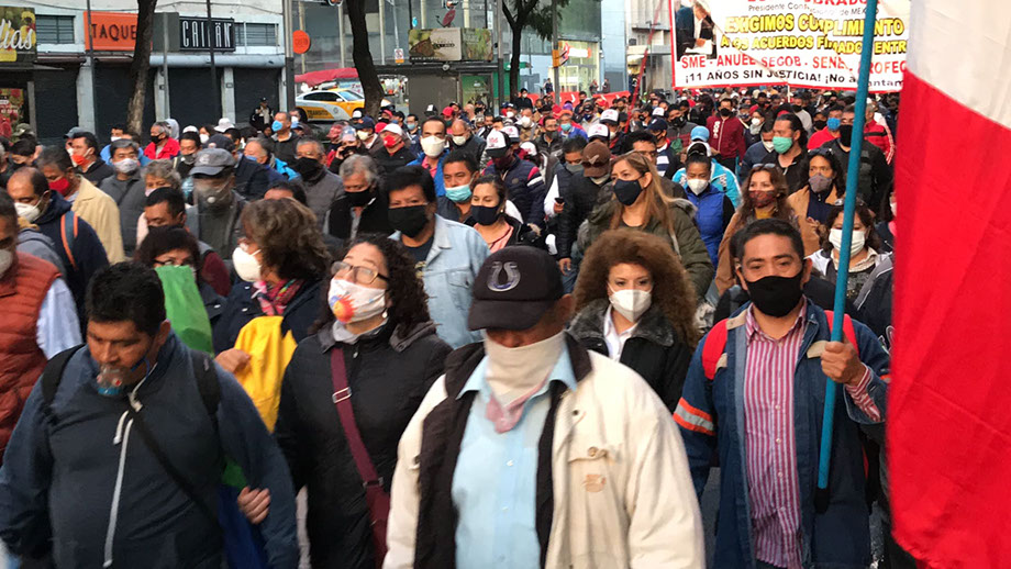 El acuerdo de la asamblea general del Sindicato Mexicano de Electricistas del 11 de octubre de 2020, día en que se cumplieron 11 años de su lucha de resistencia contra el ilegal decreto de extinción que dejó a sus agremiados en el desempleo, los representantes del SME acordaron realizar una marcha a las 6 de la mañana del lunes 12 de octubre de 2020 (Día de la Raza), para entregarle al presidente López Obrador una cartan de intención para la solución del conflicto electricista.