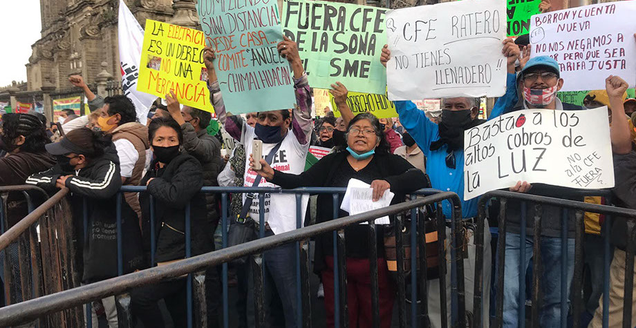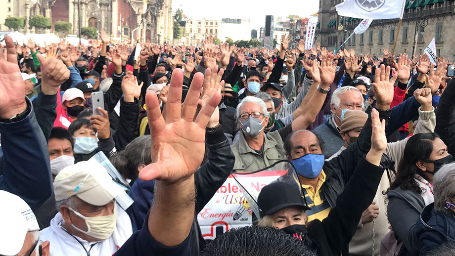 En el mitin, celebrado a las afueras de Palacio Nacional, también estuvieron presentes miembros de la Asamblea Nacional de Usuarios de la Energía Eléctrica (ANUEE) que acudieron a solidarizarse con el Sindicato Mexicano de Electricistas.