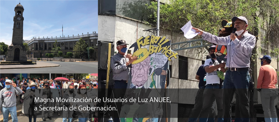 La Lucha de nuestros compañeros Usuarios de Luz que integran la Asamblea Nacional de Usuarios de Energía Eléctrica, ANUEE, no cesa por ningún motivo, así fue demostrado por nuestros combativos compañeros en la movilización que fue convocada para iniciar en las oficinas centrales de la CFE de Río Rodano donde se desarrolló un mitin en el que expresaron sus justas demandas. Posteriormente inició la magna movilización a la Secretaría de Gobernación, el enorme contingente de usuarios recorrió la avenida Reforma para llegar al Palacio de Cobián donde se desarrolló también un mitin en el que participaron Comités de diferentes lugares.