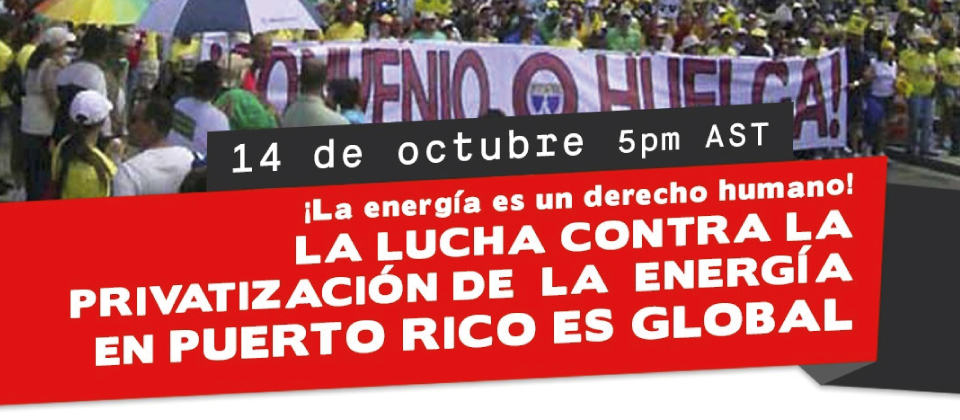 La Lucha contra la privatización de la Energía en Puerto Rico es GLOBAL, convocado por ISP Interamericana; La Internacional de Servicios Públicos es una federación sindical mundial que representa a 20 millones de mujeres y hombres trabajadores que suministran servicios públicos esenciales en 163 países. La ISP aboga por los derechos humanos, defiende la justicia social y promueve el acceso universal a los servicios públicos de calidad. La ISP colabora con el sistema de las Naciones Unidas y en asociación con organizaciones sindicales, de la sociedad civil y otras.