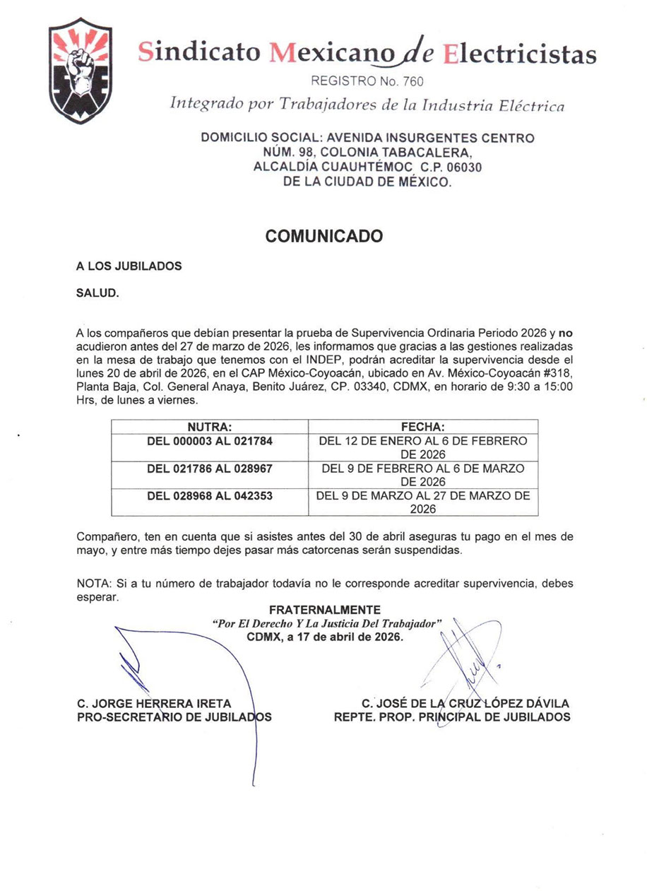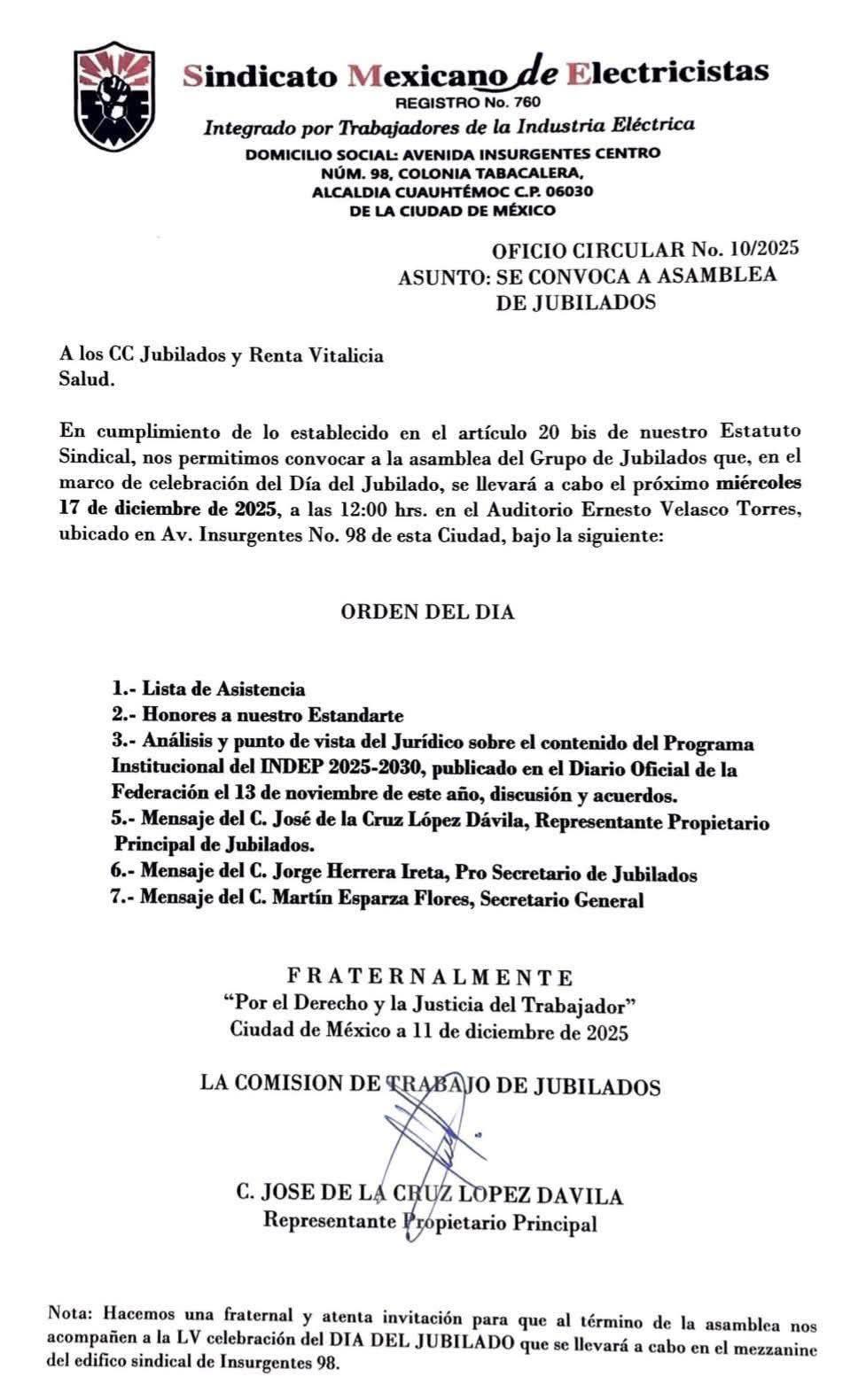 Sindicato Mexicano de Electricistas, Todos los Derechos Reservados 2024